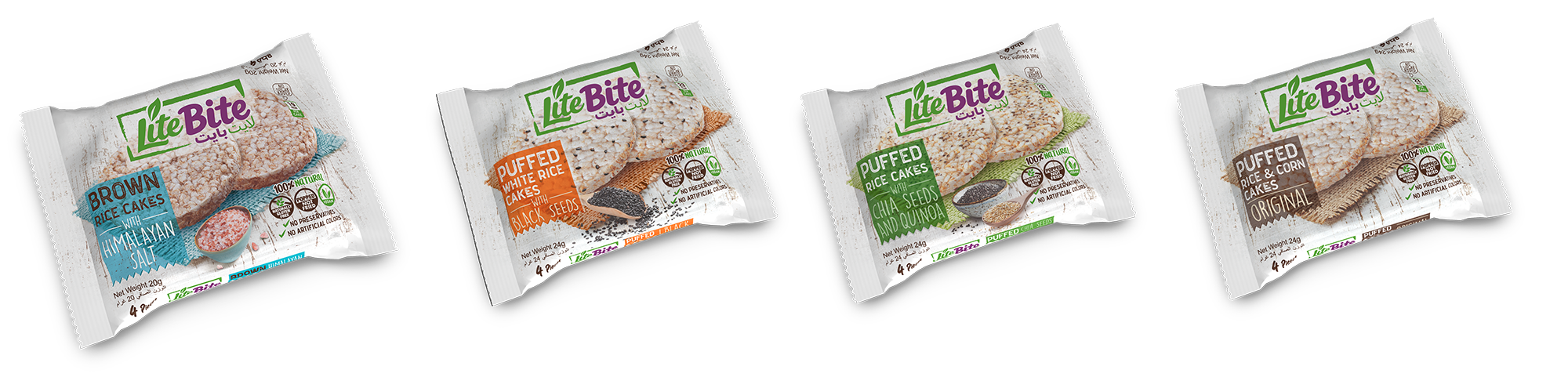مرحبًا بكم في لايت بايت – علامتكم المفضلة للكيك الأرز اللذيذ والصحي، المصنوع من أرز وذرة عاليي الجودة. نحن نؤمن بأن الوجبات الخفيفة يجب أن تكون مغذية وممتعة في الوقت نفسه، ولهذا قمنا بصناعة مجموعة من كيك الأرز الخفيف والمقرمش والغني بالنكهات، لتناسب جميع الأعمار.